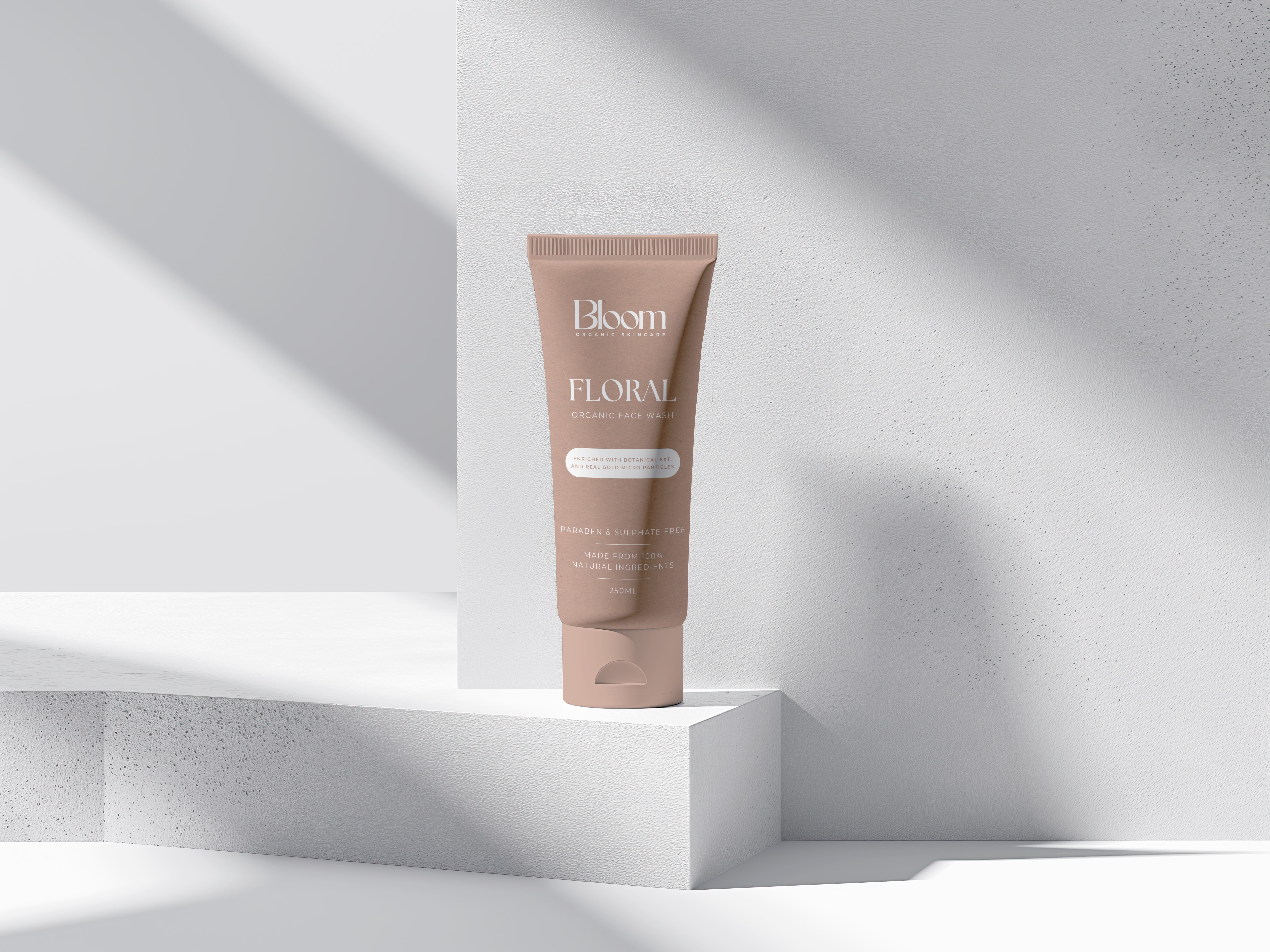 Bloom is a four-product organic skincare line built around the idea that honest ingredients deserve honest packaging. The brief called for a brand identity that felt considered and grounded something you'd find in a concept store, not a mall shelf. We built a complete visual system from wordmark to product packaging across four SKUs, each designed to let the ingredient do the talking.