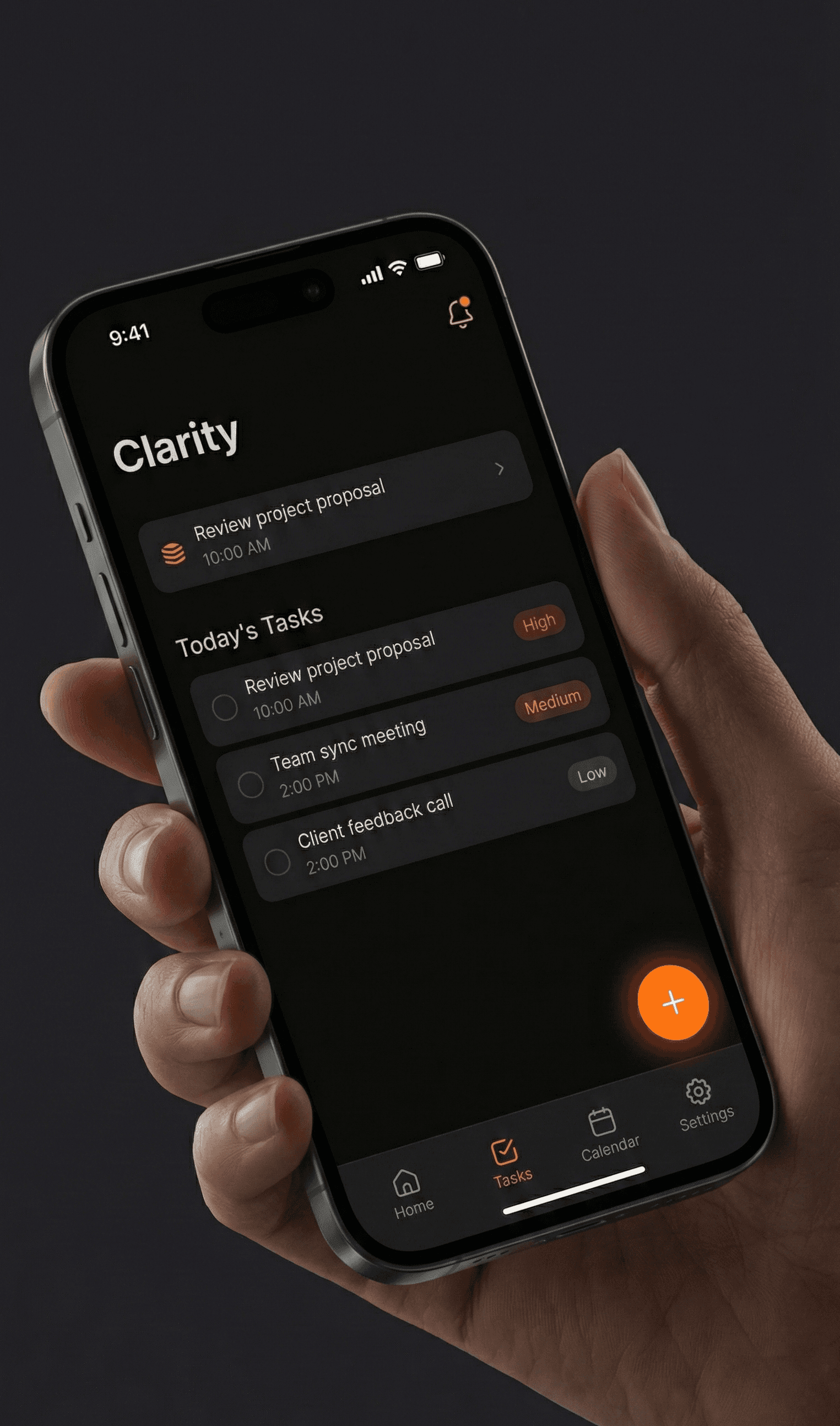 Clarity isn't just a UI - it's a philosophy of reducing friction. The high-contrast dark mode and signature orange glow provide instant visual feedback when the AI engine optimizes a calendar, proving that enterprise tools can feel as premium and intuitive as consumer apps.